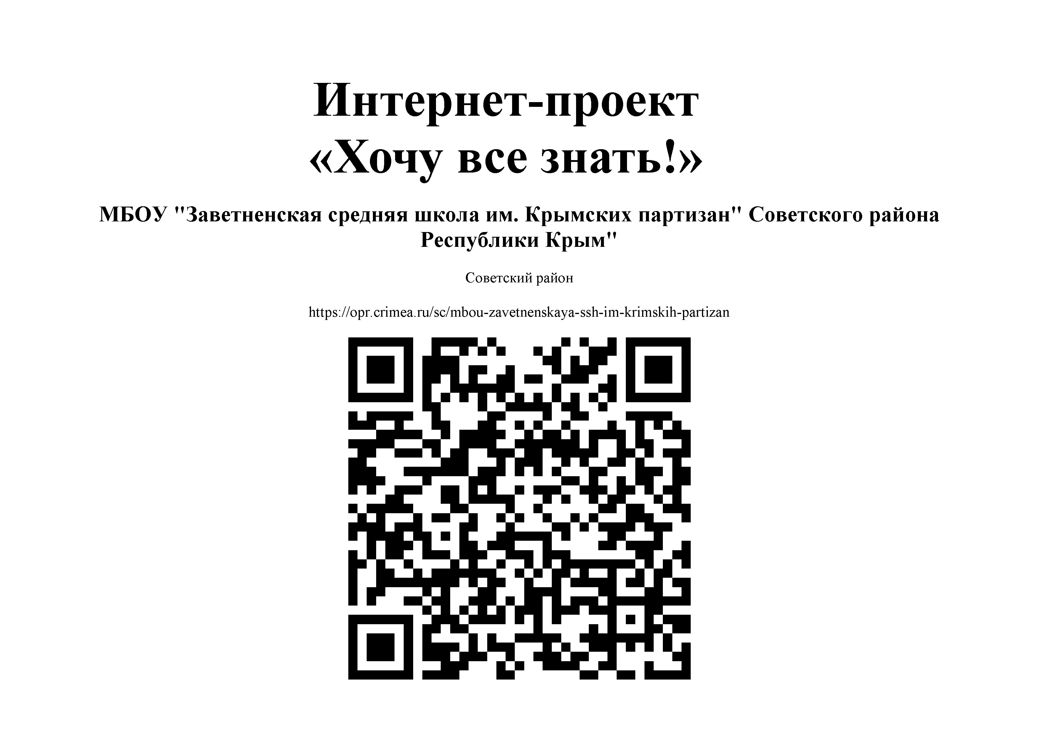 МБОУ «Заветненская СШ им.Крымских партизан» Советского района Республики Крым